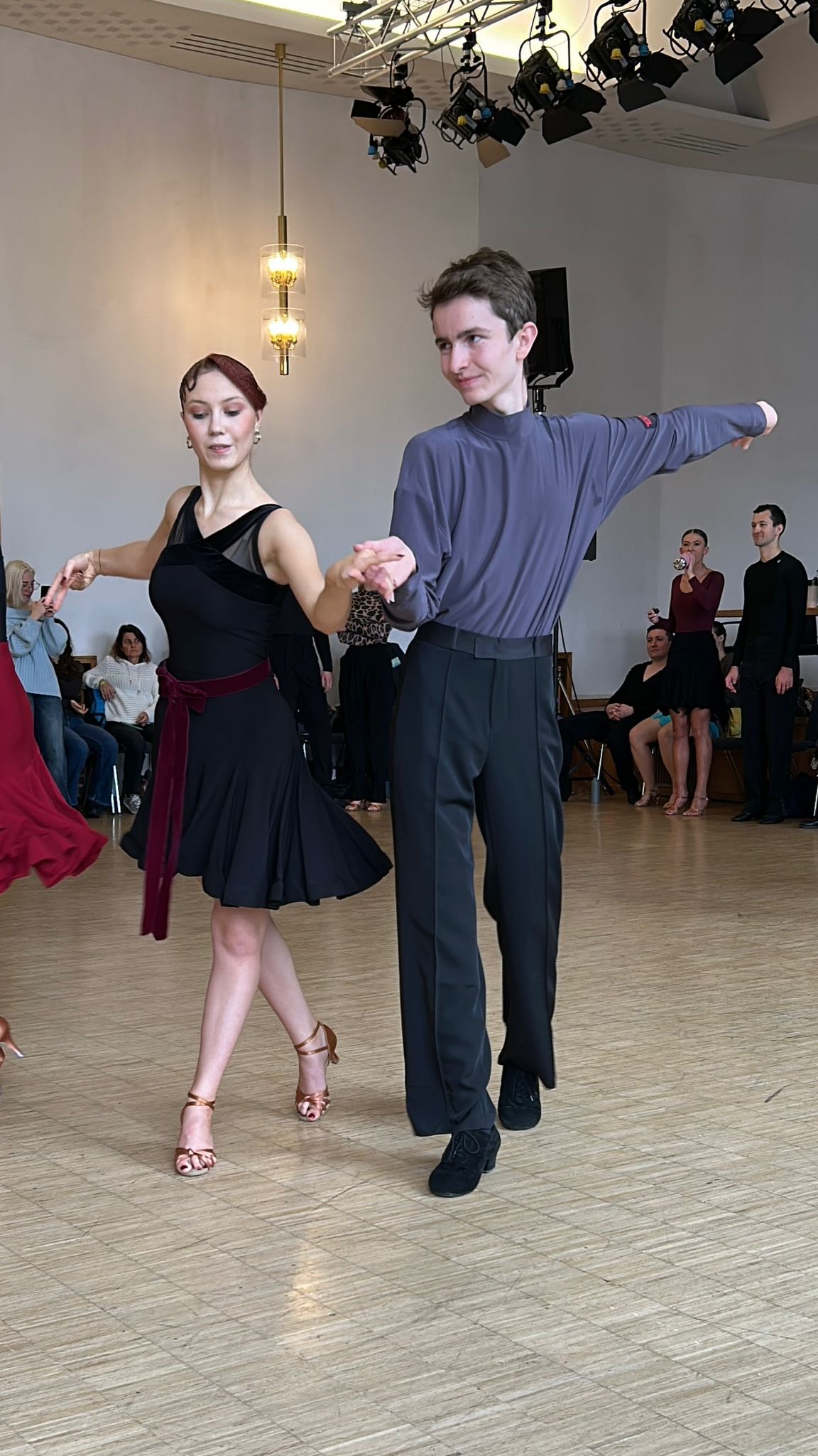 Das Turnier begann mit der Sichtungsrunde der Hauptgruppe D Standard und dem anschließenden Finale, in dem sich David Kreitmaier und Alina Maria Czoppik den 6. Platz ertanzten.