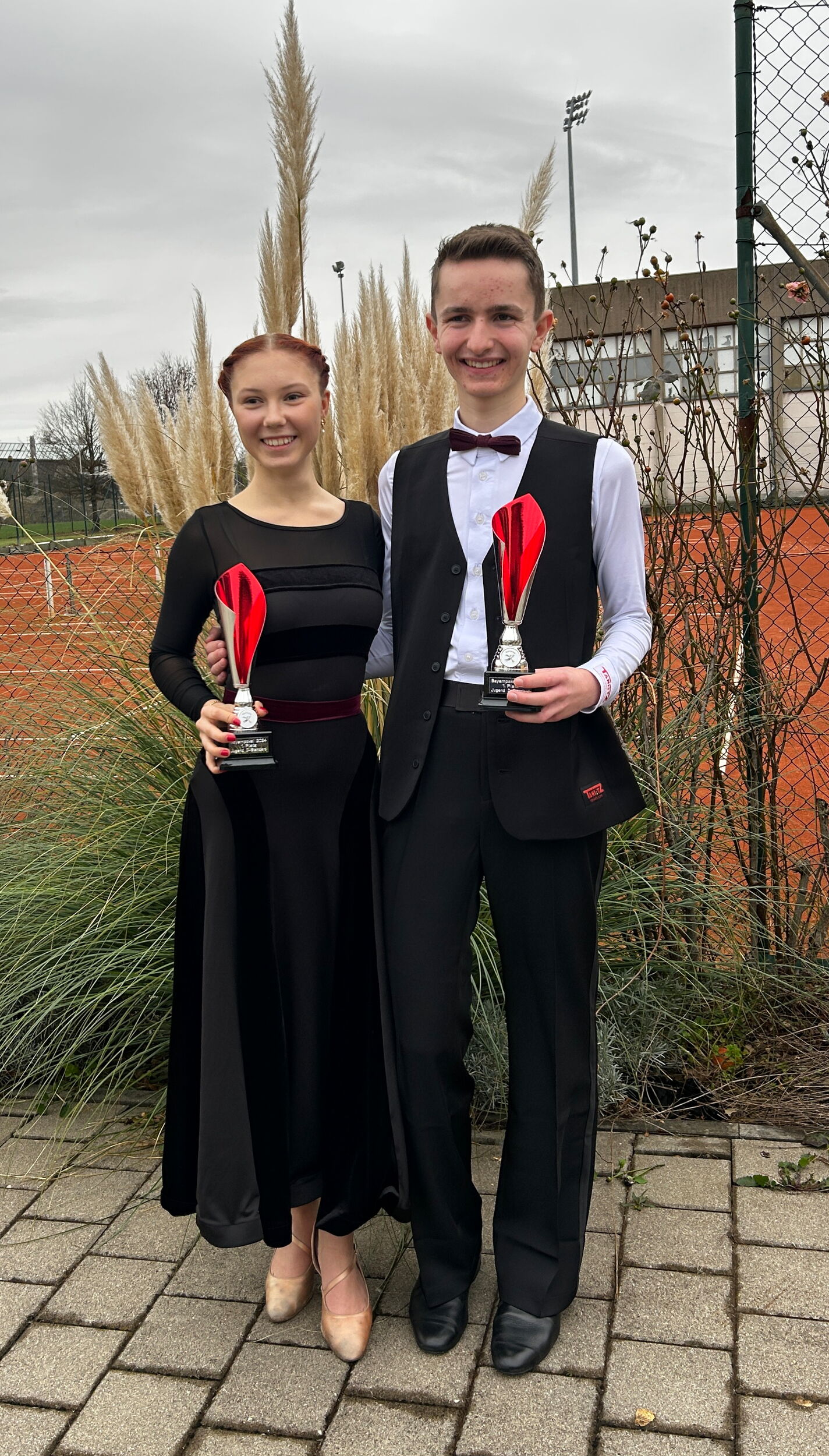 Hierzu gingen sie zunächst in der Jugend D (16-18 Jahre) Latein an den Start. Aufgrund der geringen Meldezahl wurde in einem qualitativ hochwertigen Finale direkt um die Treppchenplätze getanzt. Nach jeweils einem 4. Platz im ChaChaCha und der Rumba konnte sich das junge Paar im dritten und letzten Tanz, dem energiegeladenen Jive, den 2. Platz sichern und verpasste somit nur knapp das Treppchen.