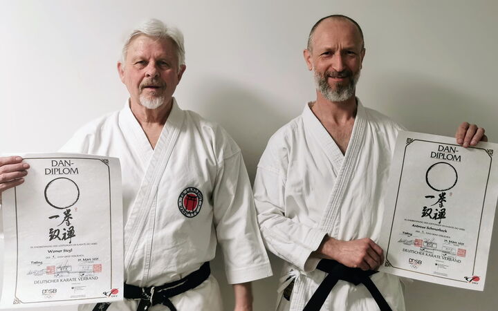 Nach längerer Vorbereitung stellten sich Werner Siegl (links) und Andi Schmerbeck, am 29. März in Tittling, der Herausforderung einer DAN-Prüfung.