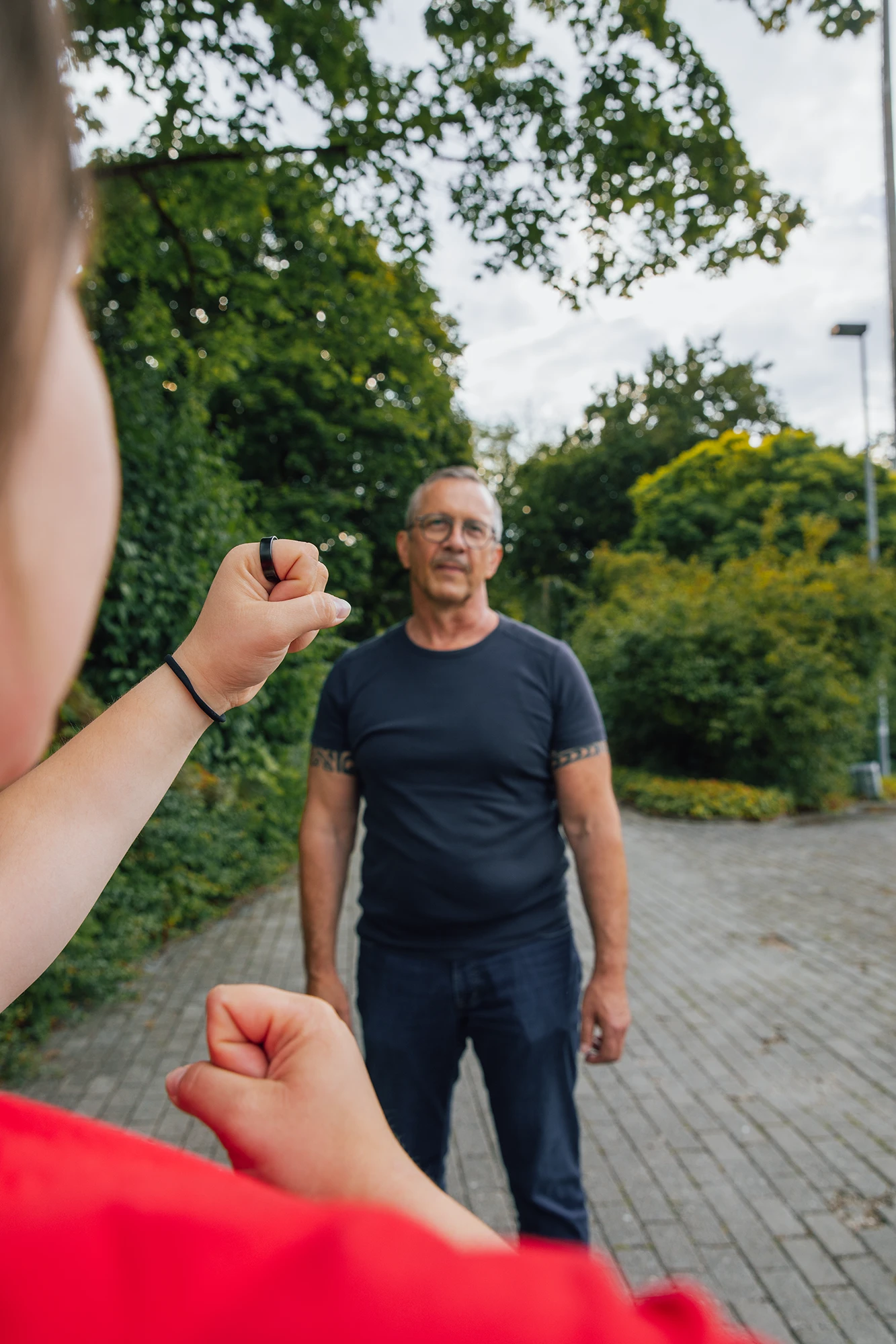 „Ich bin durch meinen Sport - Ju-Jutsu - zur Selbstverteidigung und den Kursen gekommen. Ich liebe den Kontakt mit Menschen und hatte schon immer großen Spaß daran, Wissen weiterzugeben.