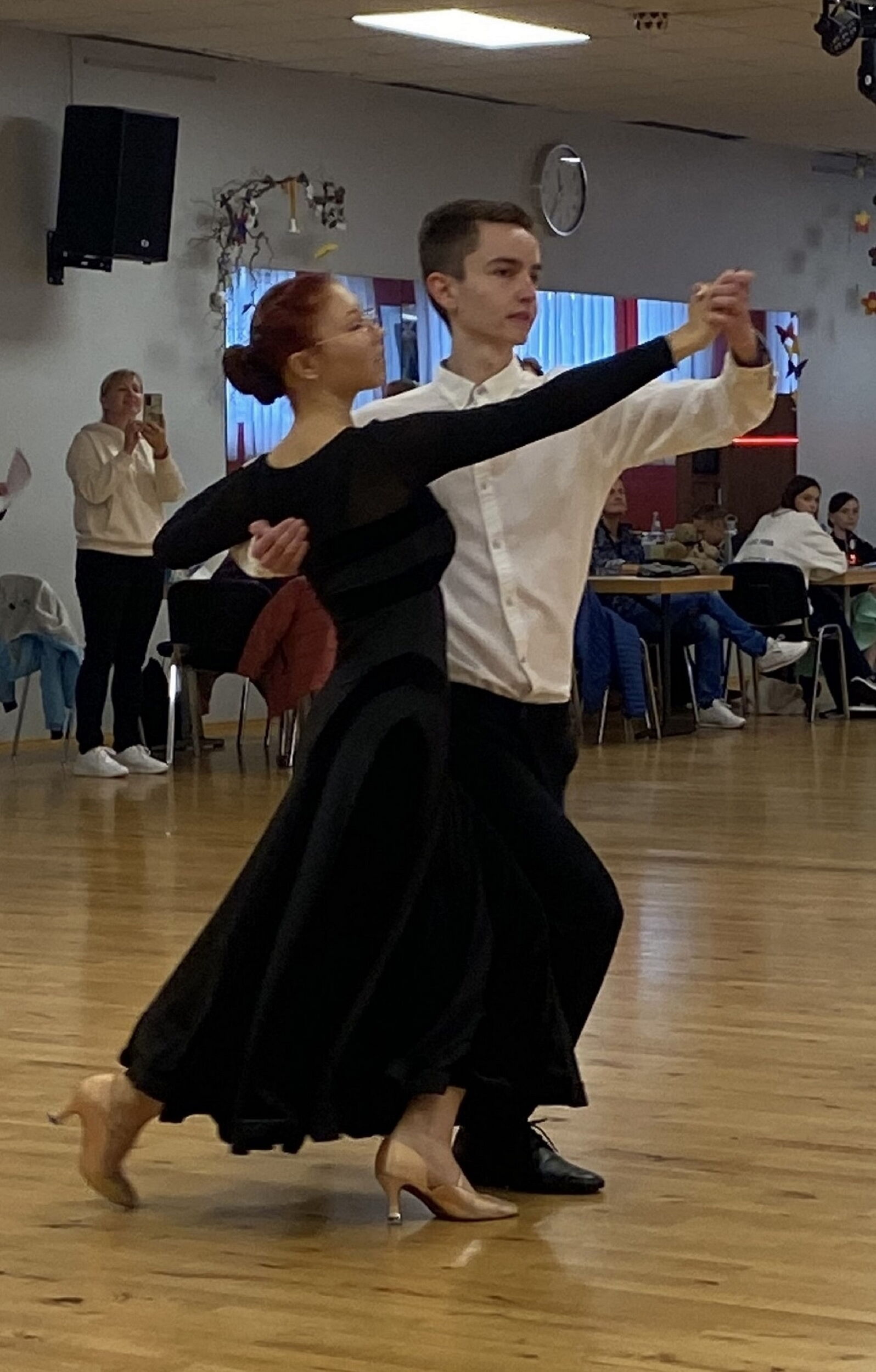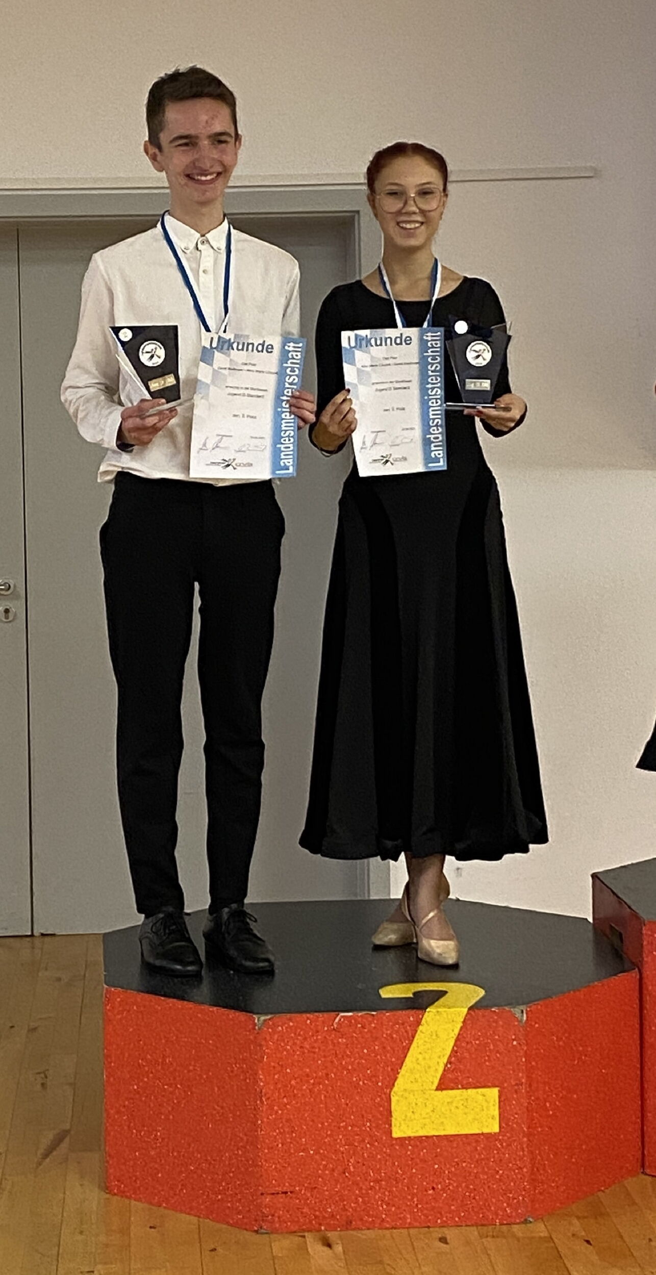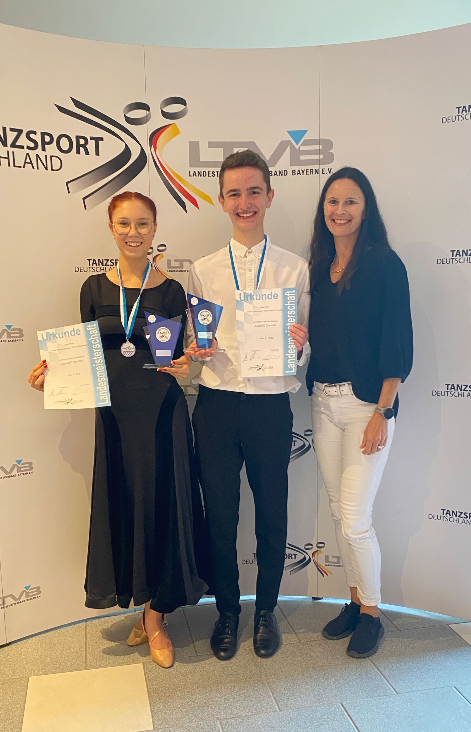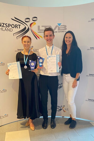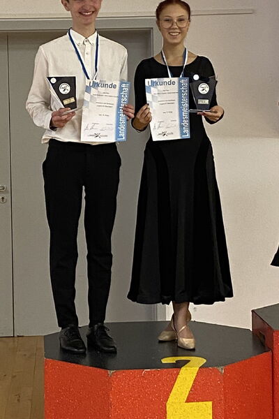 Auch David Kreitmaier und Alina Maria Czoppik von der Turngemeinde Landshut nutzten die Chance und gaben ihr gemeinsames Turnierdebüt in der Altersgruppe Jugend (16 – 17 Jahre). Gemeinsam starteten sie in der D-Klasse, in der direkt ein Finale getanzt wurde. Das junge Tanzpaar zeigte in allen drei Tänzen Langsamer Walzer, Tango und Quickstep nicht nur ihr Können, sondern auch viel Spaß am Tanzen. Da die Wertung der einzelnen Tänze erst ganz zum Schluss nach einer Ausrechnungspause bekannt gegeben wird, steigerte sich die Spannung bis über den letzten Tanz hinaus. Am Ende schlossen die beiden ihr erstes gemeinsames Turnier sehr erfolgreich mit den Vizemeistertitel auf bayerischer Ebene ab.