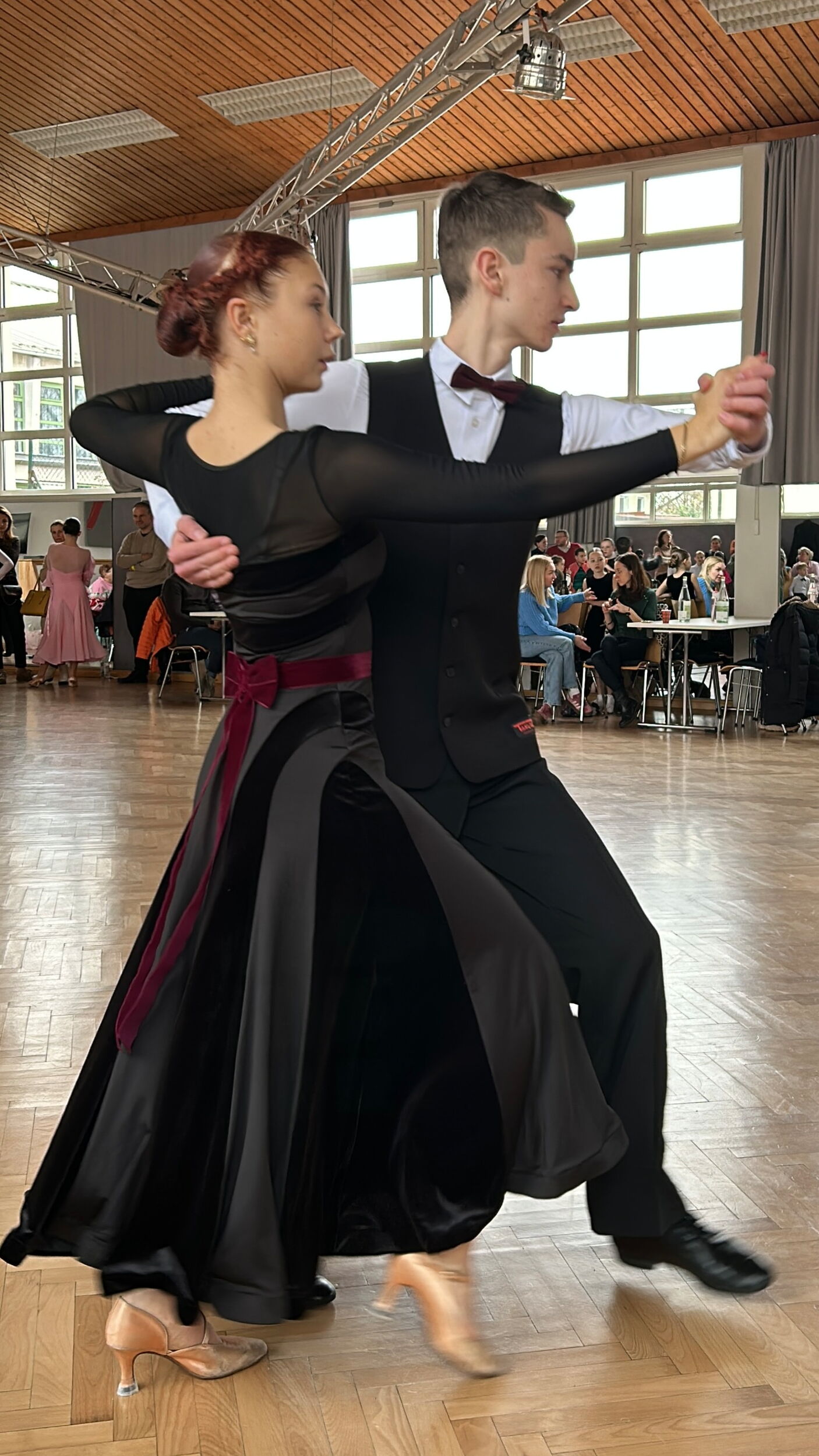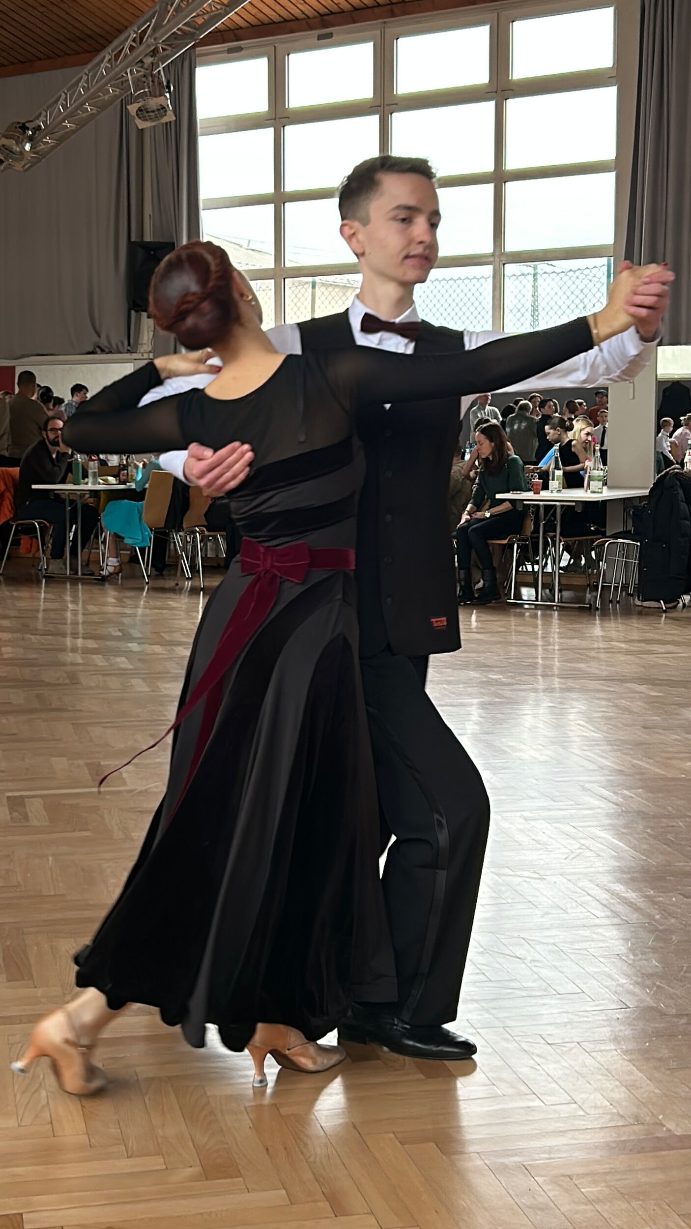 Hierzu gingen sie zunächst in der Jugend D (16-18 Jahre) Latein an den Start. Aufgrund der geringen Meldezahl wurde in einem qualitativ hochwertigen Finale direkt um die Treppchenplätze getanzt. Nach jeweils einem 4. Platz im ChaChaCha und der Rumba konnte sich das junge Paar im dritten und letzten Tanz, dem energiegeladenen Jive, den 2. Platz sichern und verpasste somit nur knapp das Treppchen.