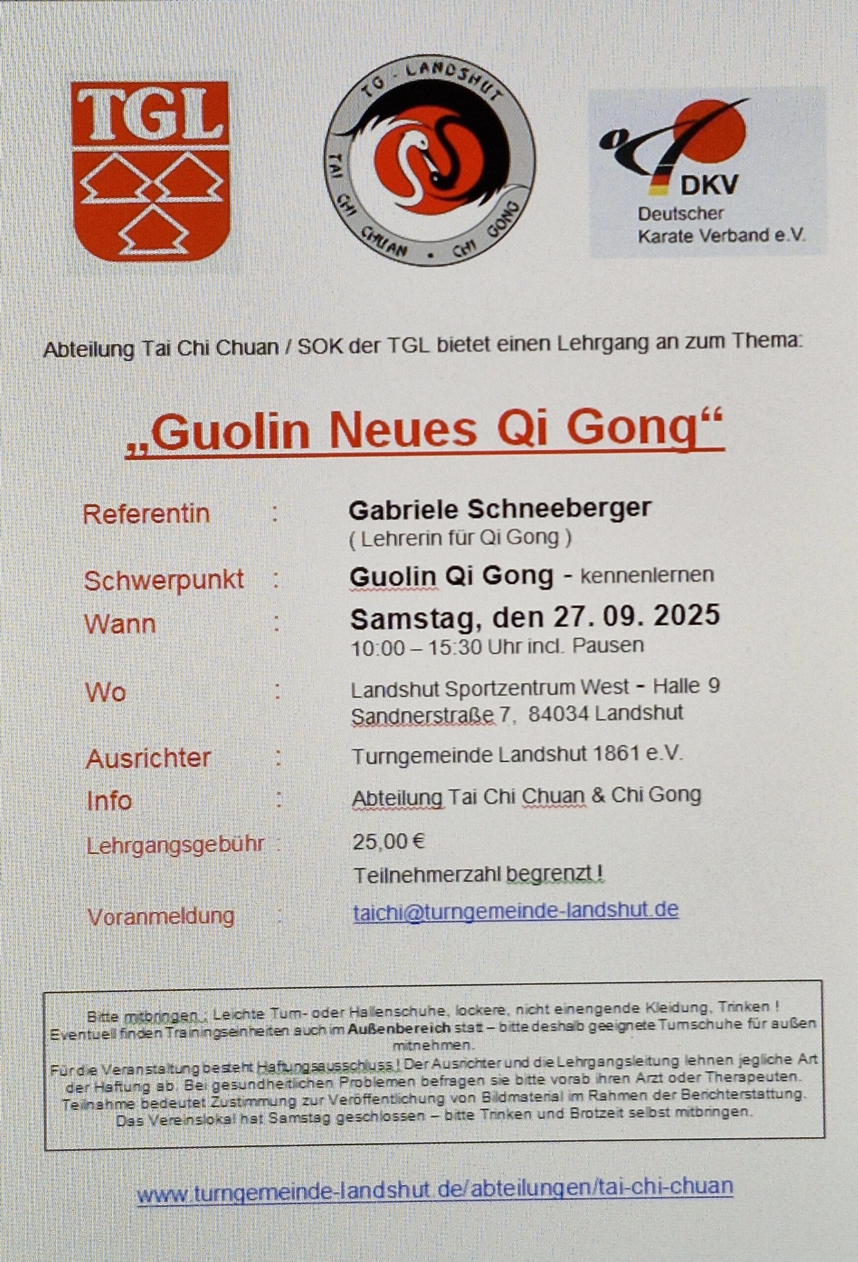 Die Abteilung führt heuer wieder ein „Sommertraining“ für alle Tai Chi Übungsgruppen, sowie Sparten Kung Fu und Kyusho-Jitsu durch. Termin bitte schonmal vormerken :  Samstag, 12.07.2025 . Programm ist noch in Planung. Bei schlechter Witterung werden eine oder zwei Trainingseinheiten in der Halle angeboten.