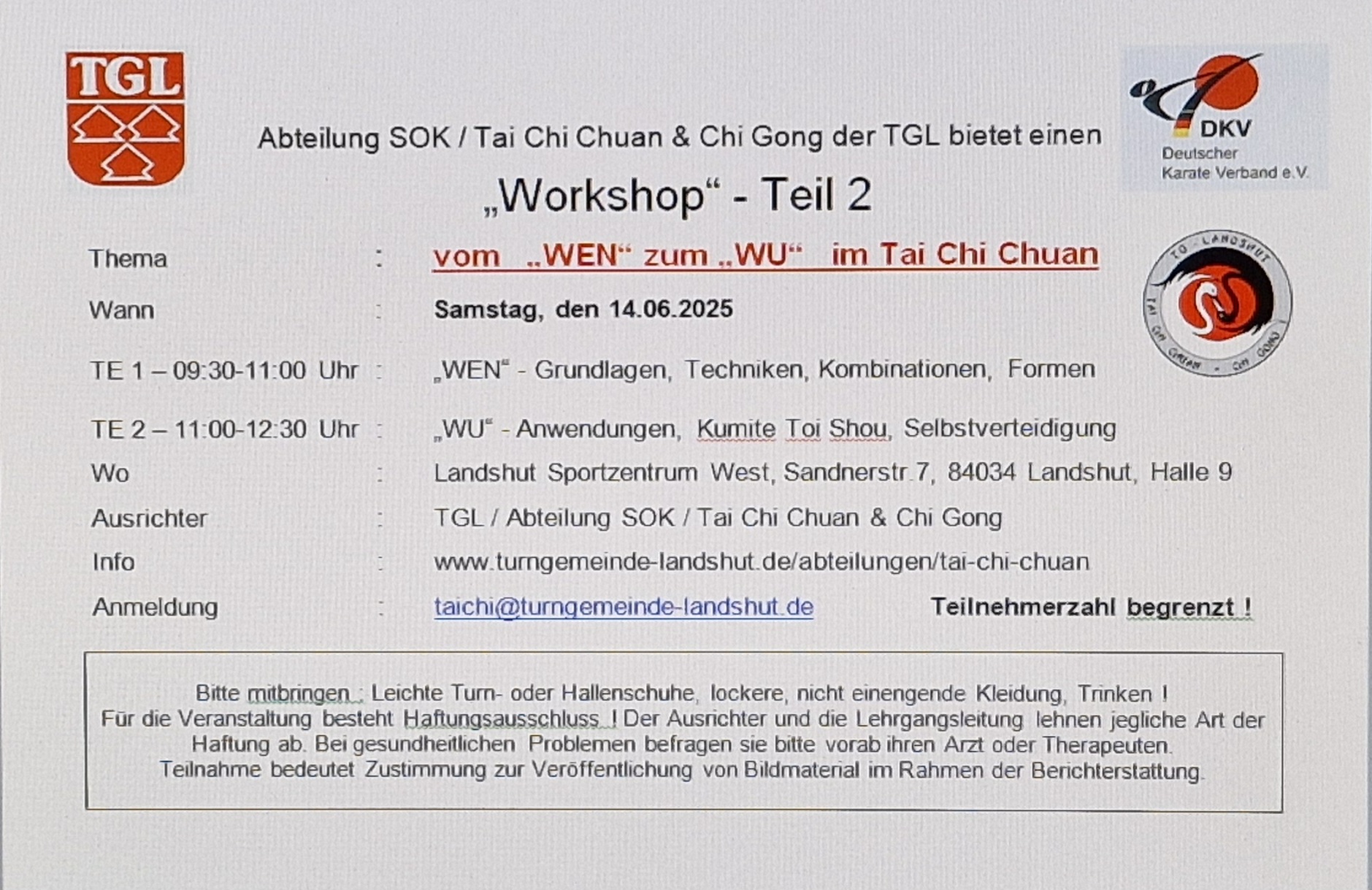Teilnahme bitte zeitnah via email / whatsapp anmelden !